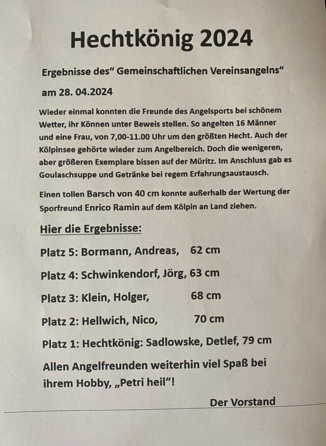 Gemeinschaftliches Vereinsangeln-Hechtkönig