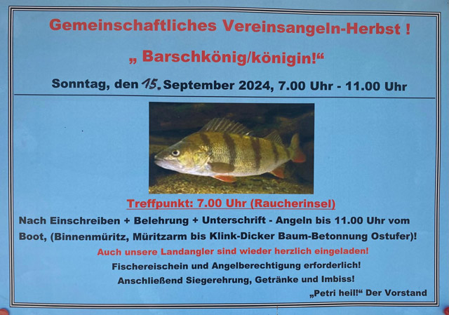 Vereinsangeln „Barschkönig“ 15.09.2024