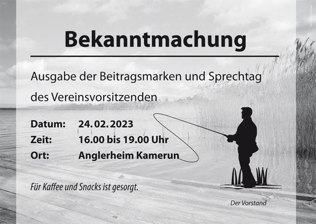 Ausgabe der Beitragsmarken und Sprechtag des Vereinsvorsitzenden