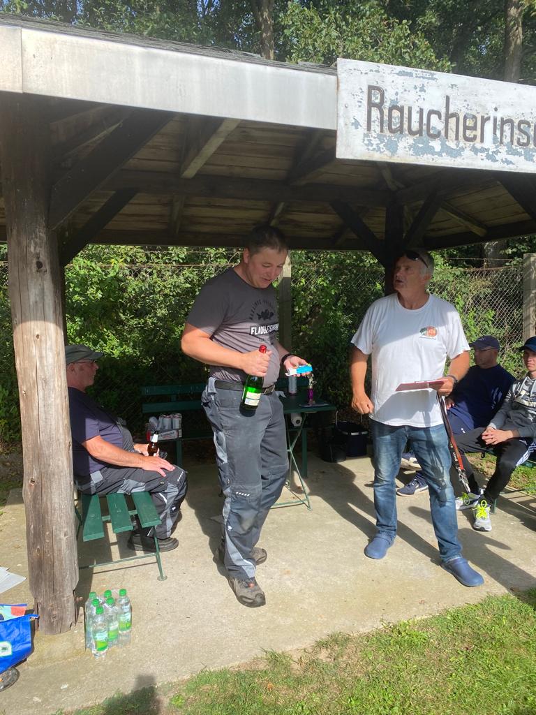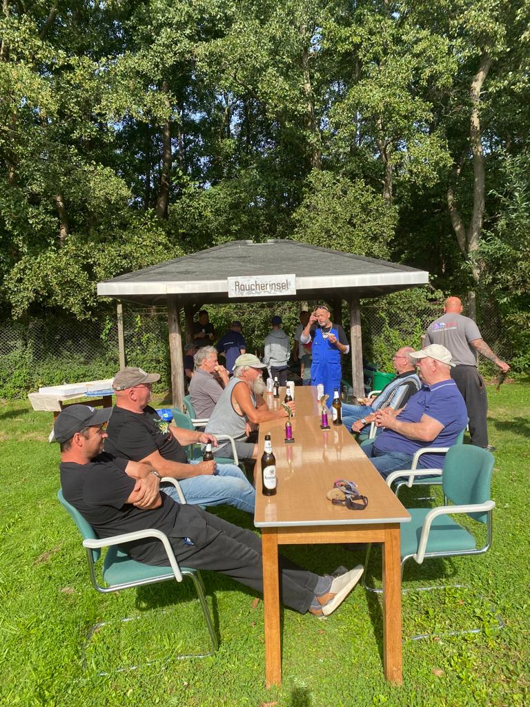 In geselliger Runde bei Wein und Bier lockerte sich die Stimmung, und es entwickelten sich angenehme Gespräche.Es wurden Erfahrungen ausgetauscht von der Angelei, von Bootstouren, von unseren gemeinsamen Arbeitseinsätzen, von unseren diesjährigen Veranstaltungen und natürlich auch mit privaten Gesprächen von ihren Erlebnissen.