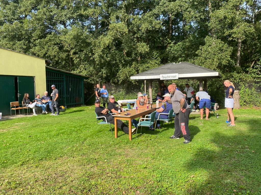 Aufgrund des schönen Wetters konnten wir auf dem Vereinsgelände unsere Tische und Stühle rausstellen. Zum Glück konnten wir unter den Bäumen und den Sonnenschirmen auch genug Schatten finden.