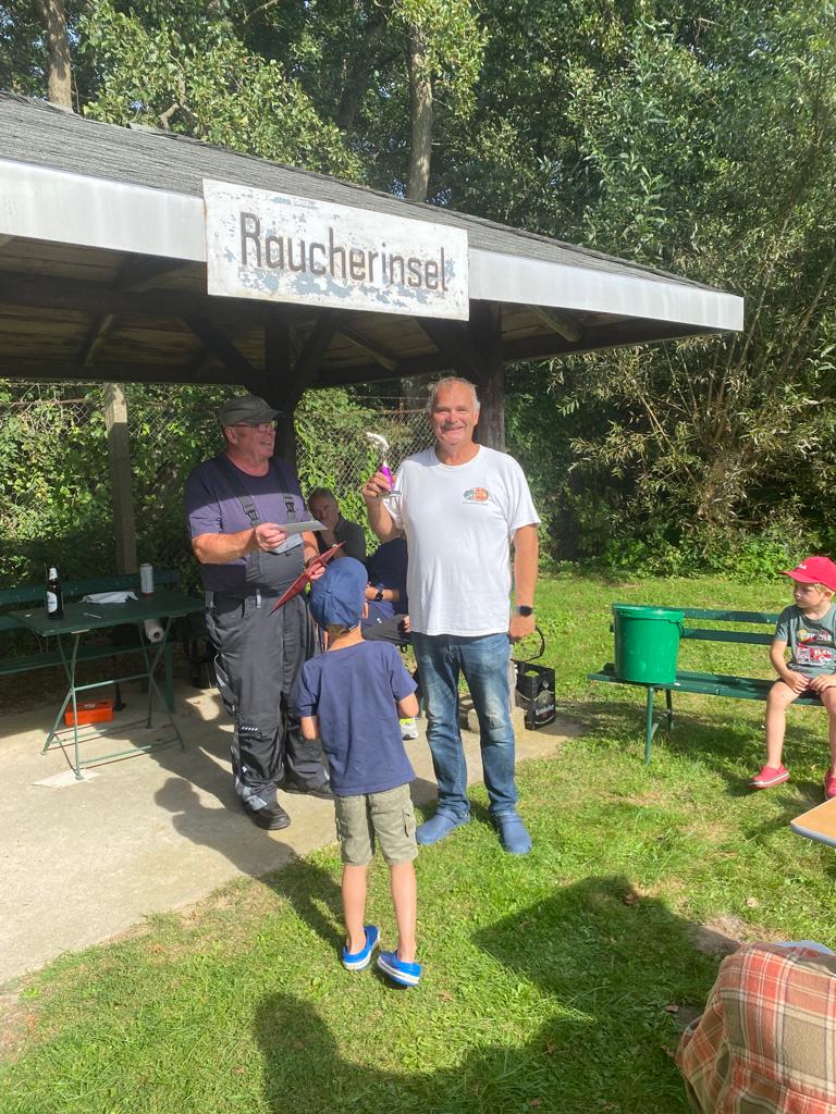 - Auf der letzten Vorstandssitzung entschlossen wir uns, das Angeln mal etwas anders zu gestalten. Im Juni wollten wir „Hechtkönig,“- und „Hechtkönigin“ und im Herbst den „Barschkönig“-und die „Barschkönigin“ küren. Die Siegerehrung mit Wanderpokal, Gutscheinen und Sachpreisen findet gleich nach dem Vermessen der Fische am Angeltag statt. Außerdem gibt es keine Angelgebietsbeschränkung mehr, d.h., man kann auch auf dem Kölpin und weiter als „Dicker Baum“ und Klink fahren, um zu angeln. Am Sonntag, d. 4.06.23 konnte Jörg Schwinkendorf den Titel „Hechtkönig“ mit einem prächtigen 86-iger Hecht, der gut im Futter stand, erringen. Den 2. Platz , mit einem 74-iger Hecht, belegte Detlef Sadlowske. Mit einem 35-iger Barsch und einer 33,5 cm großen Rotfeder kam Holger Klein auf Rang 3. Leider ging bei den Frauen niemand auf die Jagd, um den Titel „Hechtkönigin“. Bei herrlichem Sonnenschein, einer Wasser - von ca. 19 °C und einer Lufttemperatur von 24°C konnte man nicht nur toll angeln, sondern sich auch erholen. Nachteilig für das Angeln war die absolute Windstille. Ein Dankeschön für die fleißige Unterstützung der Veranstaltung durch Ramona,-und Rene Krause sowie Gundula Sadlowske, die für das leibliche Wohl mit Thüringer Grillwurst und Brötchen sowie den Auf,-und Abbau aller benötigten Sachen sorgten. In gemütlicher Runde bei Essen und natürlich auch verschiedensten Getränken gab es viel auszutauschen. Vielen Dank an dieser Stelle auch an Maik Sievert, der Frank Wolfs Boot von der Müritz in den Schuppen zurückschleppte, da der Motor nicht mehr funktionierte. „Petri heil“, auch weiterhin den Anglerinnen,-und Anglern des „Kameruner Angelsporvereins“