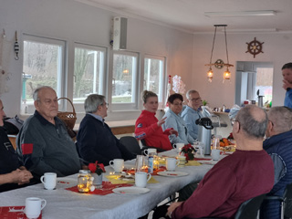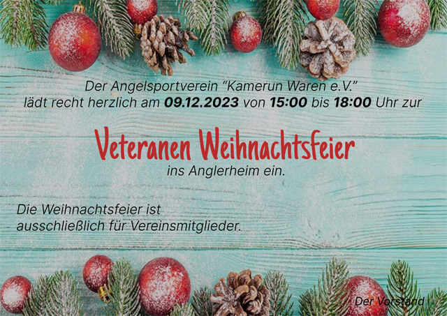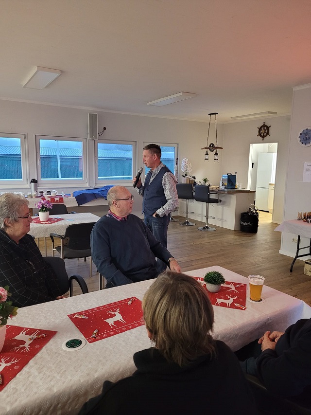 - Am Samstag eröffnete unser Vereinsvorsitzende Rene` Krause die beliebte Senioren- Weihnachtsfeier in den Räumlichkeiten unseres Anglerheims. Die Tische waren weihnachtlich, sehr liebevoll und reichlich gedeckt mit Stollen, Weihnachtsgebäck, Süßigkeiten und Mandarinen. Dazu gab es jede Menge Kaffee, welcher von Ramona Krause und Barbara Geist eingeschenkt wurde. Weihnachtliche Musik im Hintergrund umrahmte die gemütliche Atmosphäre.