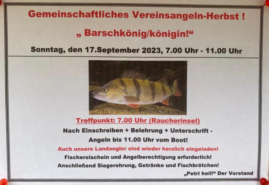 - unter dem Motto: „Barschkönig“ gesucht, am Sonntag, d.17.09.2023